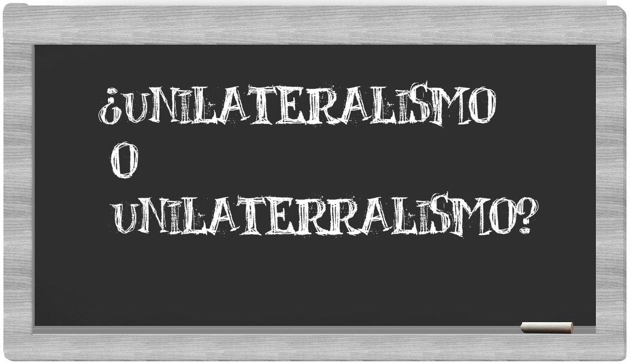 En la particular relación que existe entre los términos unilateralismo y unilaterralismo, no deberías titubear en ningún momento, puesto que únicamente unilateralismo es la opción que se encuentra debidamente registrada y validada. Por otro lado, unilaterralismo no figura en el repertorio del Diccionario de la Real Academia Española.