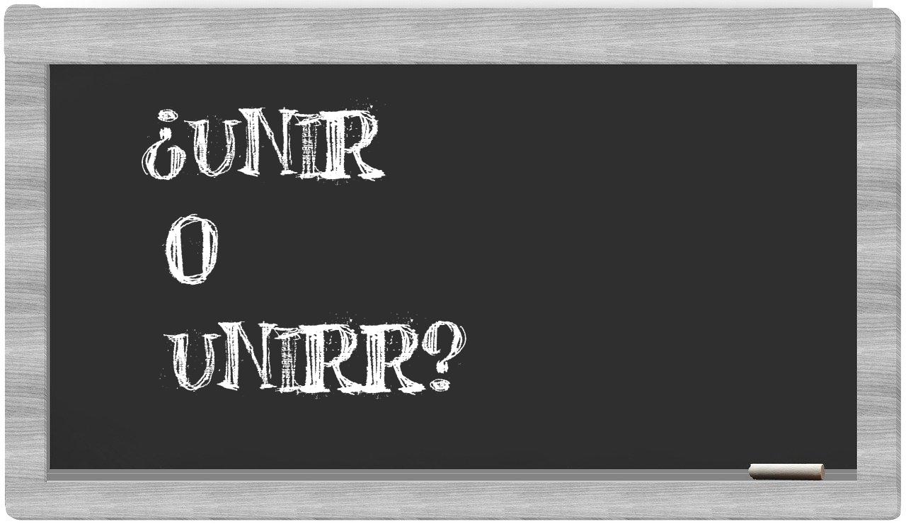 En la situación específica que involucra los términos unir y unirr, no debería haber incertidumbre alguna, puesto que únicamente unir se presenta correctamente, mientras que unirr no se encuentra registrada en el Diccionario de la Real Academia de la Lengua.