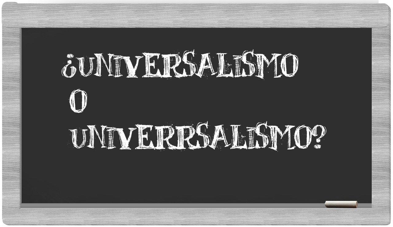 En la situación particular que involucra los términos universalismo y univerrsalismo, no deberías titubear ni un instante, puesto que solo universalismo es la única opción que cuenta con una correcta redacción, mientras que univerrsalismo se encuentra ausente en el prestigioso Diccionario de la Real Academia Española.