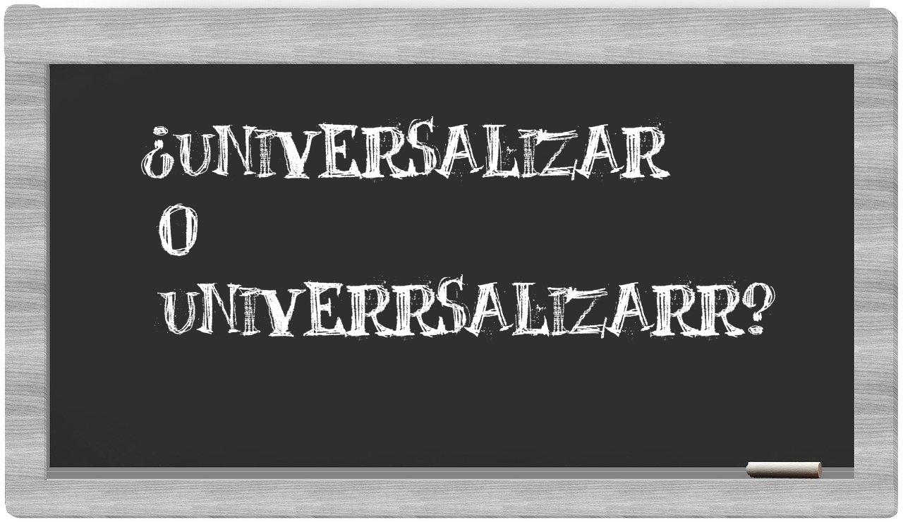 En la situación particular que involucra los términos universalizar y univerrsalizarr, no debería haber lugar para la indecisión, puesto que únicamente universalizar se encuentra correctamente registrada. Por otro lado, univerrsalizarr no figura en el Diccionario de la Real Academia Española.