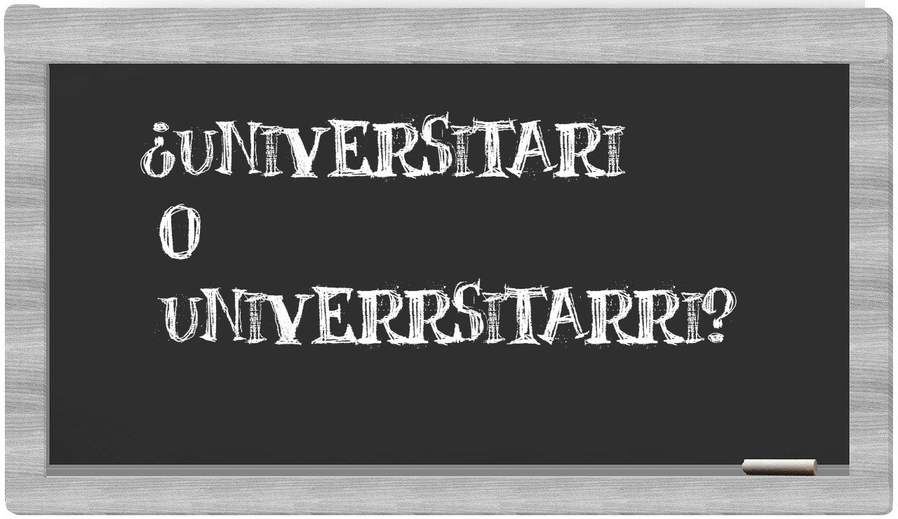 En la situación específica que se presenta entre los términos universitari y univerrsitarri, nunca deberías titubear, dado que únicamente universitari se encuentra correctamente redactada. Por otro lado, univerrsitarri no se encuentra registrada en el Diccionario de la Real Academia Española.