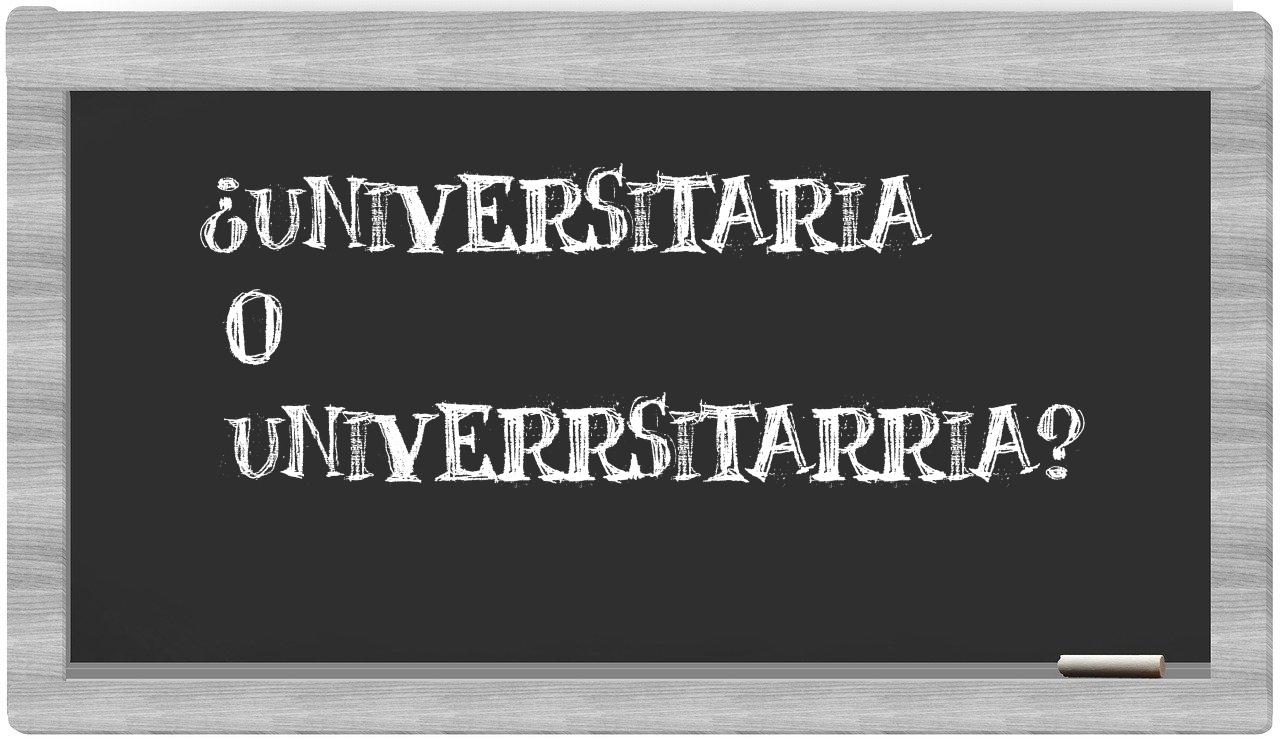 En la situación específica que se presenta entre los términos universitaria y univerrsitarria, nunca deberías titubear, dado que únicamente universitaria se encuentra correctamente redactada. Por otro lado, univerrsitarria no se encuentra registrada en el Diccionario de la Real Academia Española.