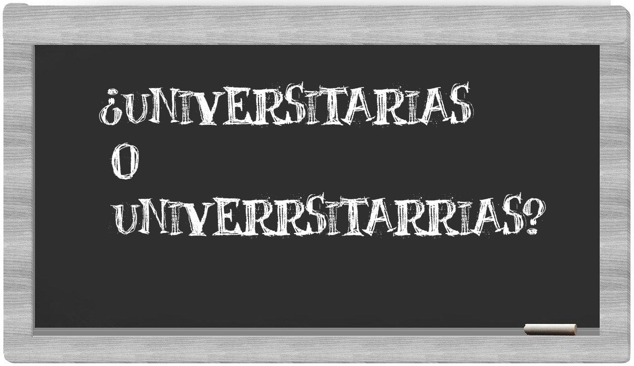 En la situación particular que involucra a universitarias y univerrsitarrias, no deberías titubear en absoluto, puesto que únicamente universitarias se encuentra correctamente redactada. Por su parte, univerrsitarrias no figura en el prestigioso Diccionario de la Real Academia Española.