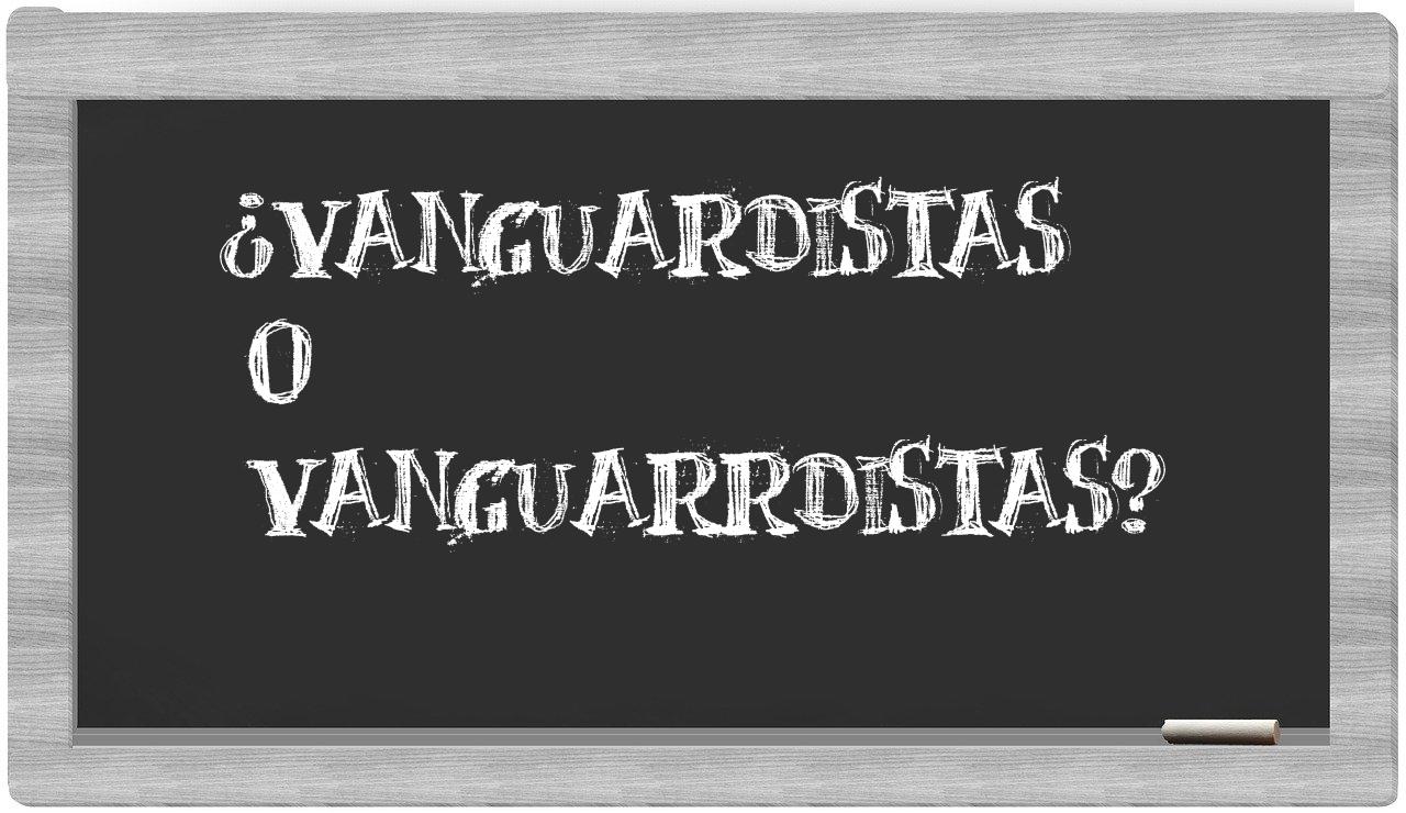 No deberías titubear en absoluto respecto a la distinción entre vanguardistas y vanguarrdistas, puesto que solo vanguardistas se encuentra debidamente registrada en el Diccionario de la Real Academia Española, mientras que vanguarrdistas carece de reconocimiento en su obra.