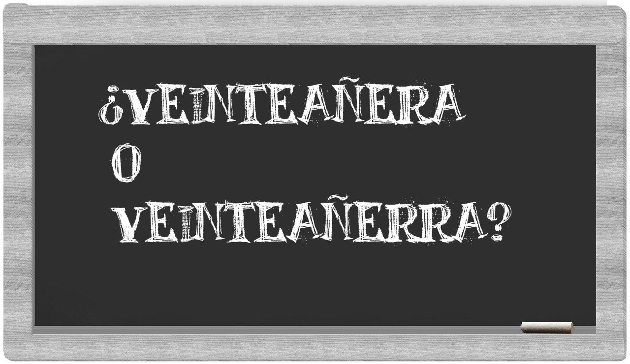 Cuando te enfrentes a la elección entre veinteañera y veinteañerra, no vaciles ni un instante, porque únicamente veinteañera es la opción que se encuentra correctamente formulada. Cabe destacar que veinteañerra no figura en el Diccionario de la Real Academia Española.