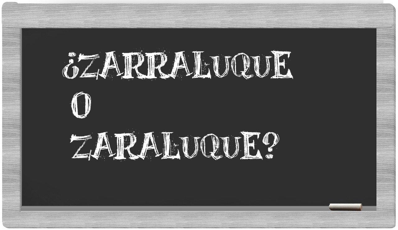 Cuando se confrontan las palabras zarraluque y zaraluque, no hay lugar para la indecisión, puesto que tan solo zarraluque es la que se encuentra correctamente formulada. La palabra zaraluque carece de reconocimiento en el prestigioso Diccionario de la Real Academia Española.
