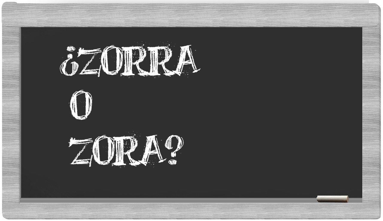 En la situación específica que involucra los términos zorra y zora, no deberías titubear en lo absoluto, porque únicamente zorra es la forma que se considera correcta. Por otro lado, zora no se encuentra registrada en el Diccionario de la Real Academia Española.